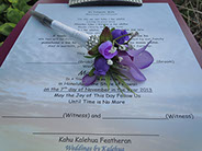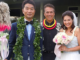 Kalehua officiates Hawaiian, non-denominational services at wedding ceremonies throughout Oahu and outer islands too, using a combination of the English, Hawaiian and Japanese languages, as the couple wishes. As he welcomes, counsels and officiates over the weddings, he shares his unique perspectives with the bride and groom, and their families.